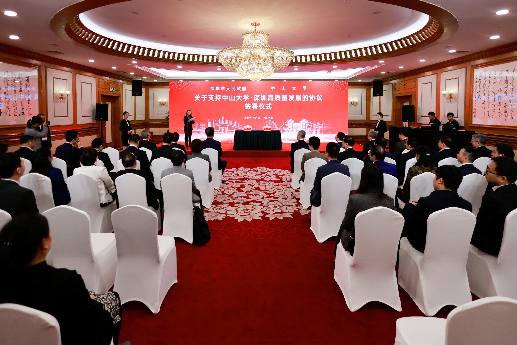 中大新聞網(wǎng)訊(記者張妍)1月31日,我校與深圳市政府在深圳簽署《關(guān)于支持中山大學(xué)·深圳高質(zhì)量發(fā)展的協(xié)議》,雙方將在前期卓有成效的合作基礎(chǔ)上,進一步在人才培養(yǎng)、人才引進、一流學(xué)科建設(shè)、科技項目與科技平臺創(chuàng)新、附屬醫(yī)院建設(shè)發(fā)展等方面加強合作,加快推進深圳校區(qū)高質(zhì)量發(fā)展。中山大學(xué)黨委書記陳春聲,中山大學(xué)校長高松,深圳市市相關(guān)領(lǐng)導(dǎo)出席活動并見證簽約。中山大學(xué)常務(wù)副校長楊清華,深圳市副市長陳清代表合作雙方簽署協(xié)議。