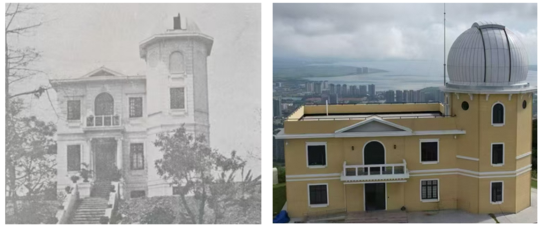 The former observatory on Wenming Road in Guangzhou (left) and the new-inaugurated observatory on SYSU’s Zhuhai campus (right).