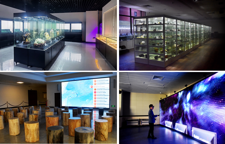 目前地質礦物博物館占地800平方米,展出標本2000余件,包括標準教學樣品陳列館(礦物巖石標本和古生物化石)、珠寶玉石館、硅化木陳列館、標準大化石陳列館、地球科學虛擬仿真實驗室、LED中國地震臺網數據實時監測展示區和硅化木開放式展區。