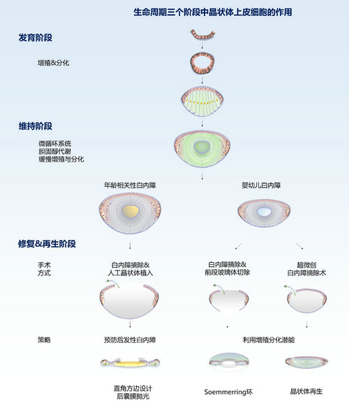 劉奕志教授團(tuán)隊(duì)回眸了晶狀體上皮細(xì)胞在晶狀體生命周期中呈現(xiàn)的神奇過(guò)程,闡述了晶狀體上皮細(xì)胞在胚胎發(fā)育、穩(wěn)態(tài)維持和術(shù)后再生三個(gè)階段發(fā)揮的決定性作用。