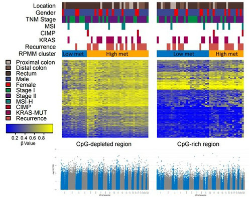 圖5 與結(jié)直腸癌復(fù)發(fā)相關(guān)的CpG匱乏區(qū)域的DNA甲基化譜