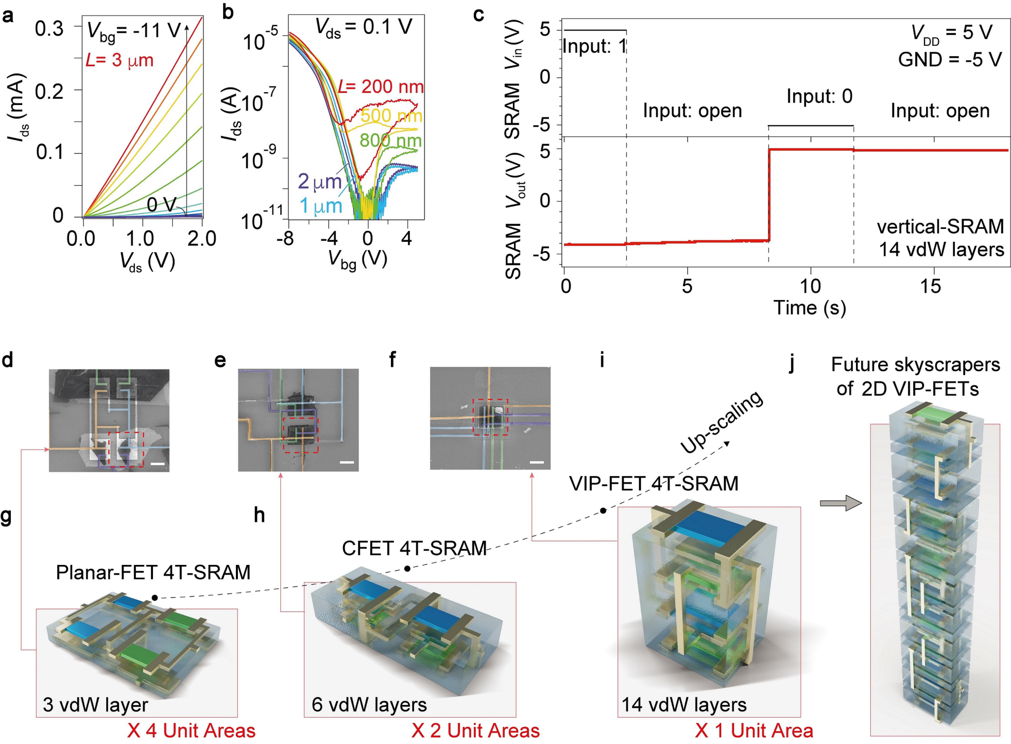 二維半導體垂直3D集成互補型邏輯電路SRAM原型器件的實現