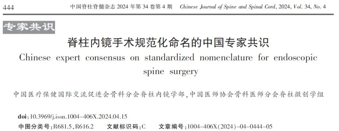 為此,中國醫療保健國際交流促進會骨科分會脊柱內鏡學部、中國醫師協會骨科醫師分會脊柱微創學組在組長戎利民教授的帶領下,聯合國內30余位知名脊柱微創專家,經討論總結后形成《脊柱內鏡手術規范化命名的中國專家共識》,并發表于2024年第4期《中國脊柱脊髓雜志》。共識的發表旨在使該項技術的命名更規范,以促進業界互相交流及更好地理解內鏡技術。