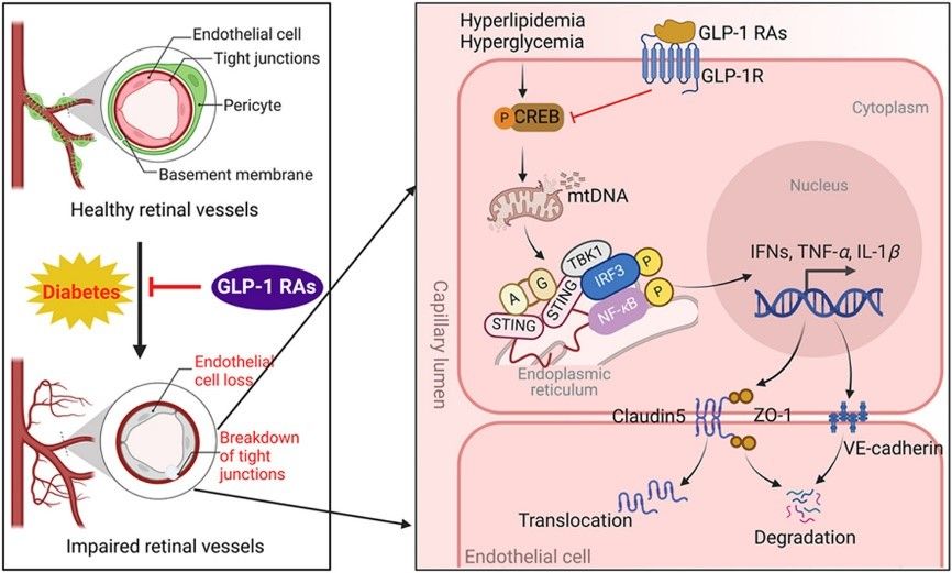 本研究率先報道了GLP-1 RAs通過抑制STING通路引起的炎癥反應,保護血管內皮緊密連接減少滲漏,為GLP-1 RAs在糖尿病微血管性并發癥的臨床應用,提供了安全有效的重要證據。
