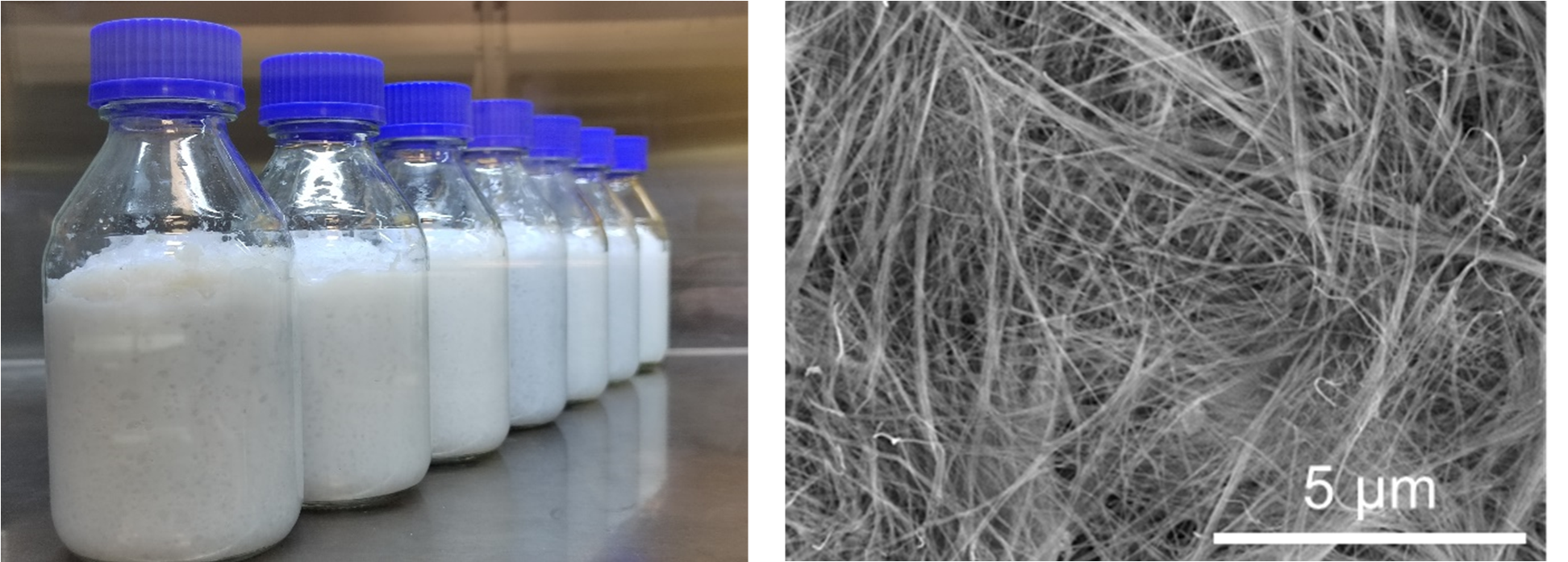 圖1 批量制備的Al(EtO)3納米線的光學照片和掃描電子顯微圖。