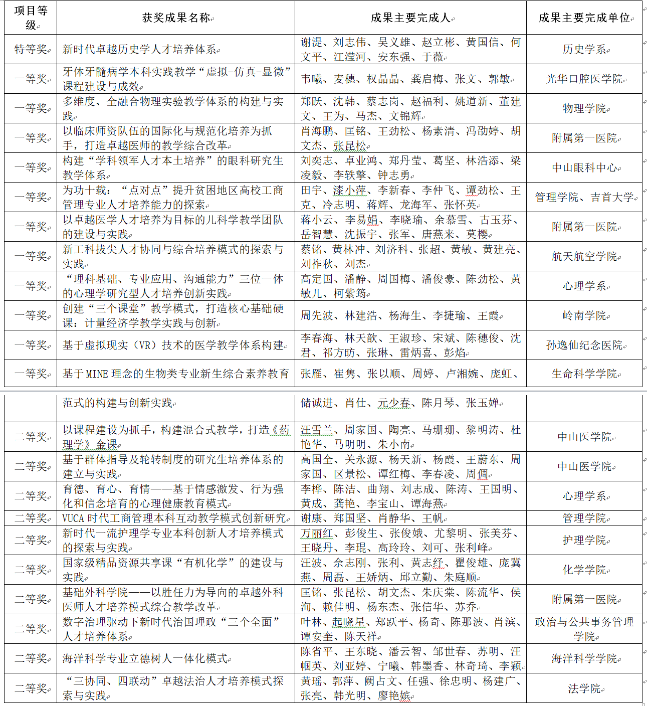 日前,廣東省教育廳公布了2019年廣東省教育教學成果獎獲獎項目名單。在全部授獎項目中,高等教育類共225項,其中特等獎5項、一等獎100項、二等獎120項。我校共有22個項目獲獎,其中特等獎1項、一等獎11項、二等獎10項,涵蓋文理醫工17個教學單位。