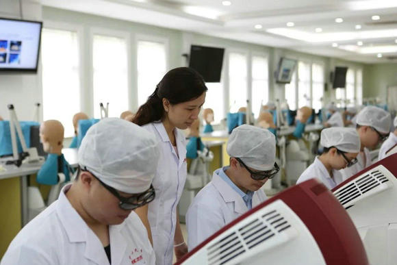 韋?(中)指導學生進行“虛擬仿真”實踐操作 (圖片來源:光華口腔醫學院)