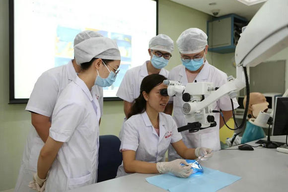 小小的患牙里有著更細微的結構和病變,口腔手術顯微鏡在牙體牙髓疾病診療中的優勢不言而喻。在熱愛專業的韋曦眼中,顯微鏡下的髓腔更是有一種“歸山深淺去,須盡丘壑美”的意境。如何讓剛開始學習牙體牙髓病學的學生們也領略到這種美呢?韋曦想到了把口腔顯微鏡引入到教學中,充分發揮口腔手術顯微鏡的在放大、直觀方面無可替代的功能。而且,將顯微鏡回歸并引入教學更是貼近臨床、與國際接軌的重要舉措。