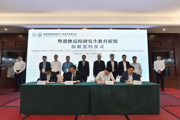 大會期間,在與會嘉賓見證下,由我校和廣州大學、香港科技大學、澳門科技大學共同發起成立的粵港澳高校研究生教育聯盟舉行了創盟簽約儀式。該專業聯盟將匯集粵港澳精英大學在研究生教育領域的資源和力量,以共同提升灣區院校研究型、創新型人才的培養層次和水平,更好地支撐灣區創新驅動發展。