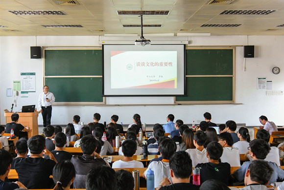 羅俊校長以“談談文化的重要性”為題,勉勵大家“胸懷天下、創新進取、追求卓越”。他結合自己的親身經歷,從科學家和大學校長的視角對中國特色社會主義文化、嶺南文化和大學文化進行了深入淺出的講解。