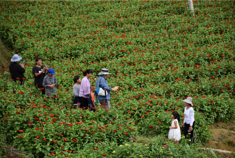 參加紅塘村高原生態(tài)金絲皇菊種植基地開園儀式后合影(來源:國際翻譯學(xué)院)