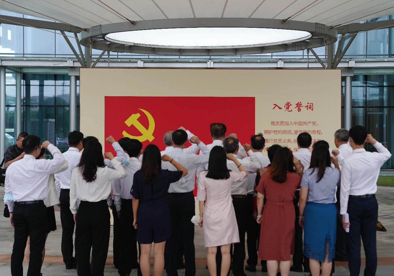 “我志愿加入中國共產黨,擁護黨的綱領,……”在中國船舶江南造船百年歷史展前面,陳春聲領誓,羅俊、蘭平等19名黨員同志擲地有聲地再次向著鮮紅的黨旗宣誓。