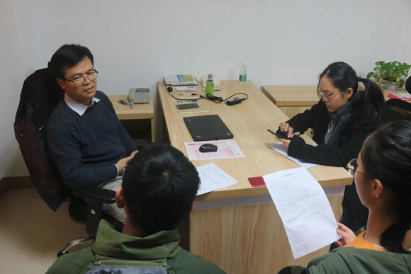 簡茂球教授在輔導(dǎo)學(xué)生(圖片來源:大氣科學(xué)學(xué)院)
