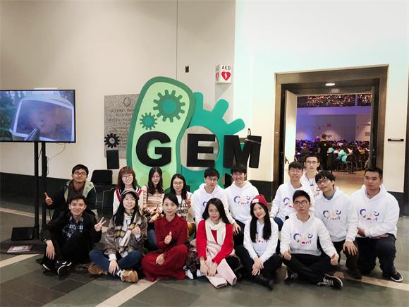 學生在2018年國際基因工程機器設計大賽(iGEM)斬獲金獎和單項獎(來源:生命科學學院)