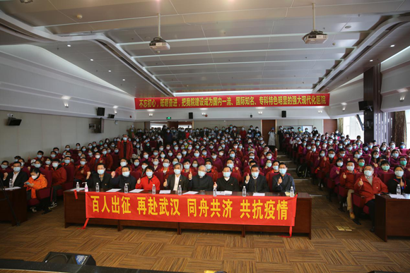 羅俊校長為援鄂醫(yī)療隊(duì)員出征送行(來源:附屬第三醫(yī)院)