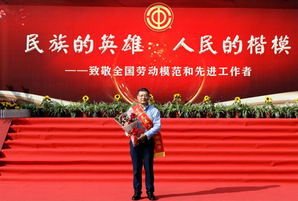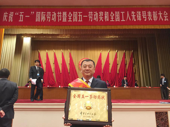 武少新書記代表中心領取“全國五一勞動獎狀”(來源:腫瘤防治中心)