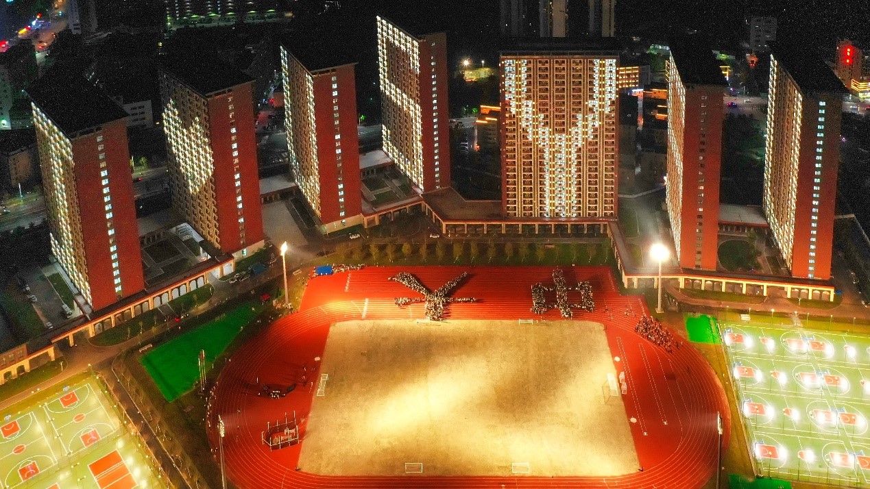 晚上20時(shí),亮燈儀式開始。“我和我的祖國,一刻也不能分割……”運(yùn)動(dòng)場(chǎng)上,鮮艷的五星紅旗迎風(fēng)飄揚(yáng),同學(xué)們揮舞著國旗,一起合唱《我和我的祖國》,在田徑場(chǎng)上擺出“中大”造型,表達(dá)對(duì)偉大祖國的熱愛、對(duì)中大的熱愛,并向深圳校區(qū)建設(shè)者們致敬。