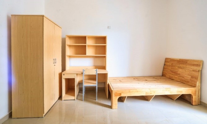 碩士生和博士生宿舍家具采用實木床鋪與優于E0級的實木復合板作為家具主材,配備獨立書桌、衣柜等,設計人性化,色調溫馨,為潛心治學創造了舒適的宿舍環境。