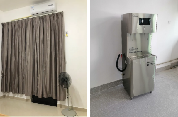 學生宿舍空調和風扇(左) 、學生宿舍公共區域直飲水設備(右)