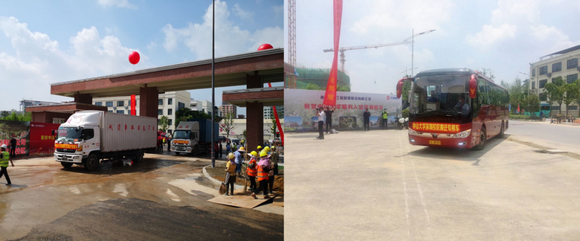 運輸行李的貨車和運送師生的客車分批抵達深圳校區(qū) 黃驊攝