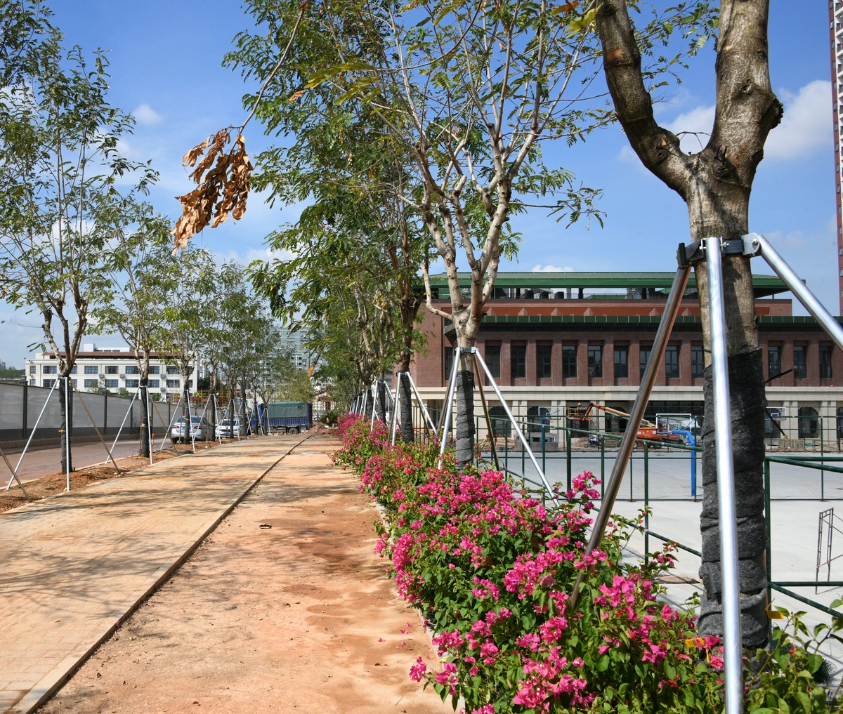 盡管近期天氣酷熱難當,但是深圳校區工程建設仍有條不紊地進行,工地上進出的工程車川流不息,施工人員揮汗如雨堅守崗位。七棟落成的嶄新的學生宿舍樓并排而立,從運動場外極目遠眺,在藍天白云紅花映襯下分外靚麗。