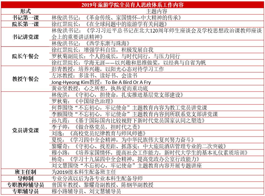 2019年旅游學院“全員育人”思政體系工作內容(來源:旅游學院)