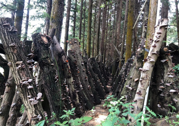 柯木灣村盛產各種各樣林木。2020年初,國道兩邊白楊樹因為枯萎,被當地公路局砍伐下來堆在路邊。精打細算的李銳看到了商機,他帶領村集體合作社低價采購了這些枯木,將他們分成兩列,整齊地排在山腳下的林蔭小道旁,建成了木耳種植基地。