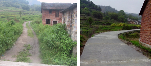 修建前(左圖)和修建后(右圖)的村路(來源:校工會(huì))