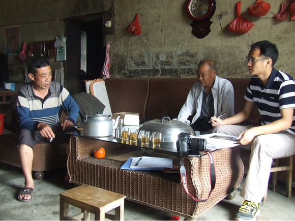 沙敏(左)剛到柯木灣村時走村入戶,了解貧困戶情況(來源:校工會)