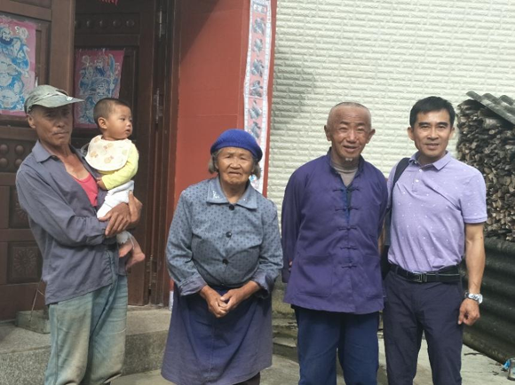 郭興勇(右)在紅塘村張廷華家核實紅卡信息(來源:校工會)