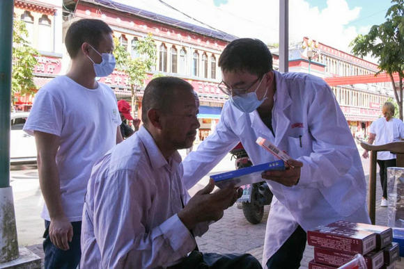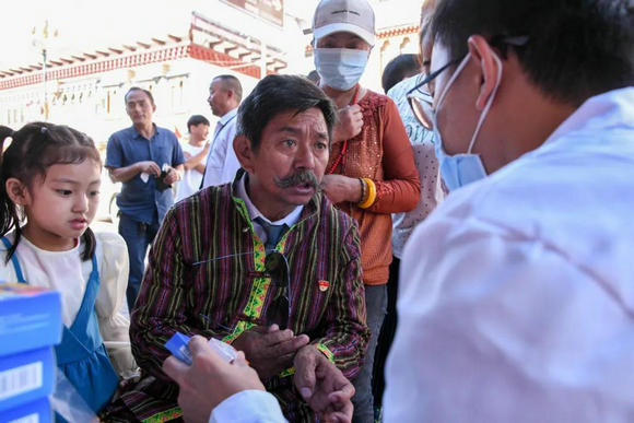 恰多次仁在西藏自治區林芝市墨脫縣的一個工地上做螺絲工。他自己也記不清,什么時候飛了個碎屑進眼睛。拖了幾天,眼睛越來越難受,正好聽說國家醫療隊的義診擺到了墨脫的街頭,恰多次仁跟妻子和工友一起來看病,看了眼睛,順便還看了腰痛的問題。