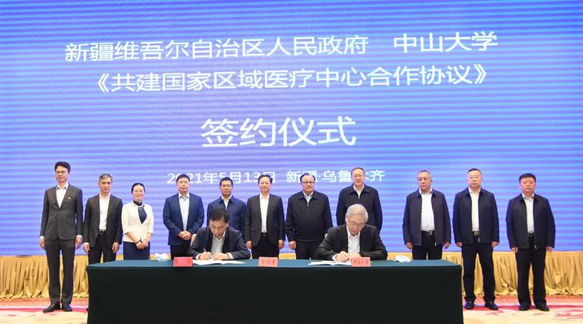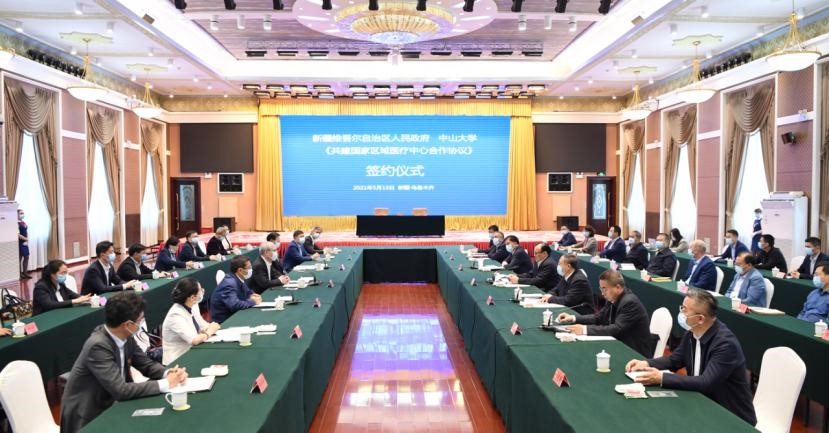 中大新聞網電(記者 吳立堅)5月13日,新疆維吾爾自治區人民政府與中山大學在烏魯木齊簽署共建協議,雙方將共同建設南疆首個國家區域醫療中心暨中山大學附屬喀什醫院(以下簡稱“國家區域醫療中心”)。該中心將依托中山大學強大的學科群綜合實力及各直屬附屬醫院在傳染病相關學科的臨床研究、人才培養、技術轉化、技術輻射以及管理示范等方面的優勢,切實推動新疆醫療人才培養,促進醫療服務水平的提升,守護新疆尤其是南疆各族群眾的生命安全和身體健康。