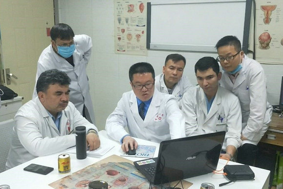 2019年8月,剛從美國結(jié)束一年海外進(jìn)修歸來的陸立,在得知醫(yī)院組織報名援疆工作時,他第一時間向組織遞上了申請書。“在組織和單位的支持下,我獲得難得的機(jī)會去外面學(xué)習(xí),學(xué)成歸來,我覺得自己有義務(wù)、有責(zé)任到祖國需要我的地方去,在祖國西部邊陲大地上培養(yǎng)一批泌尿外科專才,留下一支帶不走的醫(yī)療隊伍。” 作為中組部第九批援疆干部、廣東省第四批醫(yī)療人才“組團(tuán)式”援疆干部,陸立于2020年3月26日來到喀地一院,執(zhí)行為期一年的援疆任務(wù)。 進(jìn)入新的崗位、新的角色,陸立表示:“在喀什的每一天工作,我都能從中有所收獲,有所思考,有所成長。廣東援疆醫(yī)療隊強(qiáng)大的團(tuán)隊力量,后方醫(yī)院老師們的指導(dǎo),讓我有信心守護(hù)喀什同胞健康!” 談到手術(shù),陸立總愛將其比喻成是在制作一份“精美禮物”的過程,“做最美的手術(shù)當(dāng)做‘禮物’,這是我的博士后老師、中山六院任東林教授常掛在嘴邊的一句話,一直伴隨著我從醫(yī)生涯。它時刻提醒著我們,一名醫(yī)生不僅要具備解決疑難疾病的能力,更要有愛的投入,對患者、對工作都是如此。” 據(jù)了解,從事泌尿外科工作10余年的陸立,學(xué)術(shù)經(jīng)歷十分豐富,既是婦科專業(yè)碩士、泌尿外科博士,還是肛腸外科博士后,臨床業(yè)務(wù)“橫跨”整個盆底器官疾病領(lǐng)域。在美國科羅拉多大學(xué)醫(yī)學(xué)院進(jìn)修期間,他接受了為期一年的外科和機(jī)器人腹腔鏡手術(shù)技能培訓(xùn)。