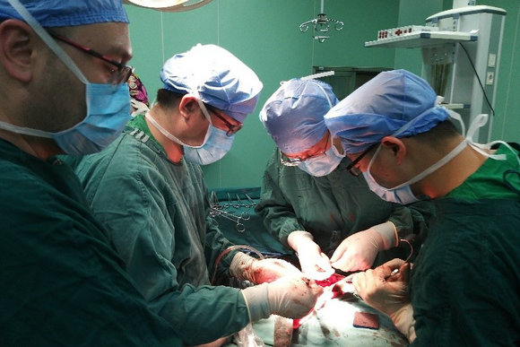 手術(shù)臺上的陸立(圖片來源:喀什地區(qū)第一人民醫(yī)院)