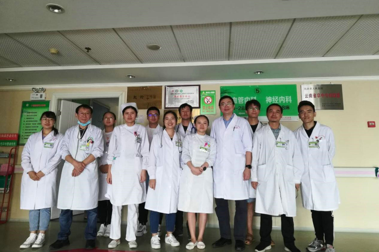 林永青副教授(右四)與鳳慶縣人民醫院心內科同事