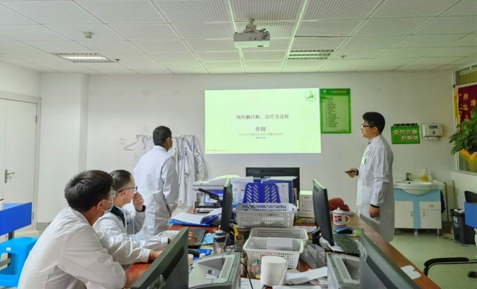 對(duì)于需要手術(shù)的每一例患者,術(shù)前曾鋼會(huì)帶領(lǐng)大家進(jìn)行詳細(xì)的體格檢查,并在病床邊進(jìn)行規(guī)范的教學(xué)查房,通過(guò)提出問(wèn)題,回顧小講課的知識(shí)點(diǎn),結(jié)合體格檢查對(duì)手術(shù)方案進(jìn)行規(guī)劃。術(shù)后為讓基層醫(yī)療護(hù)理同質(zhì)同步發(fā)展,加速患者康復(fù),曾鋼在給患者查房的同時(shí),針對(duì)患者術(shù)后應(yīng)注意的護(hù)理問(wèn)題及康復(fù)鍛煉給予悉心指導(dǎo),讓幫扶科室團(tuán)隊(duì)醫(yī)療技術(shù)水平大幅提高。