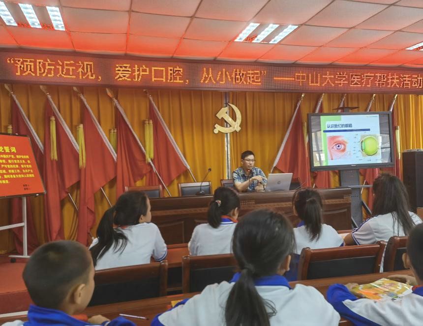 劉良平給青少年學生開展近視防控科普(來源:中山眼科中心)