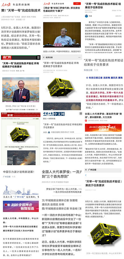人民日報、新華社、中央人民廣播電臺等多家媒體集中報道“天琴一號”在軌驗證消息