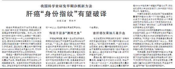 《人民日報》(2017年10月30日12版)報道徐瑞華團隊肝癌早診研究成果