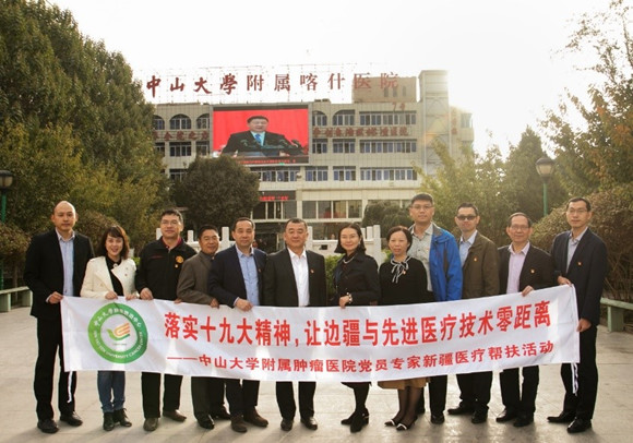 2018年10月,中心黨委書記武少新帶領黨員專家團隊,赴新疆醫科大學腫瘤醫院、附屬喀什醫院開展醫療幫扶,并組織大型義診活動