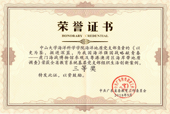 注:海洋科學(xué)學(xué)院黨委榮獲中山大學(xué)“2018年先進(jìn)二級黨組織”稱號