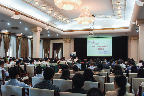 10月31日上午,我校召開校院兩級中心組學習會議,專題學習黨的十九大精神,十九大代表、校黨委書記陳春聲,黨委副書記、校長羅俊分別主講題為《認真學習黨章修正案,切實加強學校黨的建設》《學習十九大報告,提高一流大學內涵發展水平》的黨課。會議由黨委副書記余敏斌主持。全體校領導、校長助理,各二級黨委(黨總支)、直屬黨支部、黨工委書記,機關各部門負責人,各學院、直屬系、直屬單位、附屬醫院(單位)負責人,產業集團負責人等參加會議。
