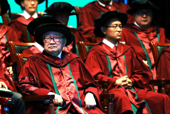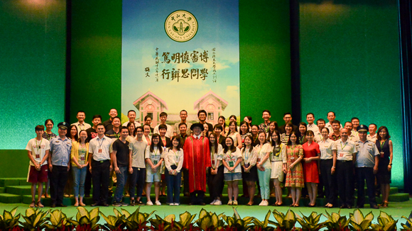 6月30日上午,夏書章教授雙手擎著重達五公斤的權(quán)杖,一步步堅定無比地邁入梁銶琚堂。談到學位授予儀式,夏書章教授用了兩個詞來概括,“正規(guī)”“隆重”。他還對即將畢業(yè)、踏上人生新征程的中大學子表達了殷切的期望:“中大畢業(yè)生在工作崗位上得到的評價普遍很高,因為他們踏實肯干、兢兢業(yè)業(yè),這是我們校風的反映。希望今年的畢業(yè)生們在踏出校門、成為中大校友后,能繼續(xù)保持我們一貫的校風、學風。也希望校友畢業(yè)后繼續(xù)關(guān)心母校、回報母校,形成良性循環(huán)。”夏書章教授同時希望學校繼續(xù)做好工作,為學生營造良好學風,培養(yǎng)卓越校友。“一所大學之所以能成為一流大學,是因為有一流的教育環(huán)境和一流的學生。”