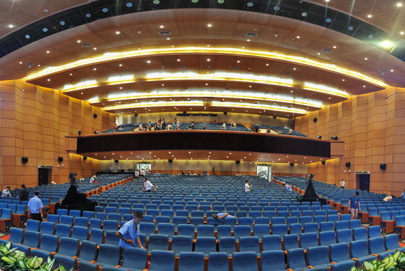 六月初,火辣的太陽小露盛夏的威力,總務(wù)處的工作人員已經(jīng)開始在會場排查用水用電安全隱患。這是每一年后勤人最忙碌的時刻:檢查各處水電設(shè)施是否正常,維修更換老化電源線路,處理供水設(shè)備滴漏,更新因白蟻而損壞的木質(zhì)門框、地板、柜子......由于天氣炎熱,梁銶琚堂又是校園活動的聚集地,會場內(nèi)的三臺中央空調(diào)總是同時處于高負荷的運轉(zhuǎn)狀態(tài),會有停轉(zhuǎn)的隱患。為確保室內(nèi)溫度適宜,總務(wù)處的工作人員多次維修,更換了防護網(wǎng),清除了堵塞外機水冷槽的樹葉。