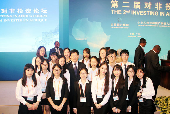 2016年9月7日,在第二屆對非投資論壇上,廣東省委常委、副省長徐少華看望了我校國際翻譯學(xué)院“青馬”公益服務(wù)隊志愿者們。