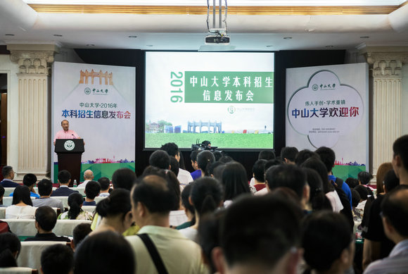 中山大學2016年本科招生信息發布會由教務部陳敏主任主持。發布會上,黎孟楓副校長介紹了學校悠久辦學歷史、辦學實力、學科發展等情況,并表示學校以“德才兼備,領袖氣質,家國情懷”為人才培養目標,致力于將學生培養成學術精英、行業領袖和社會英才。