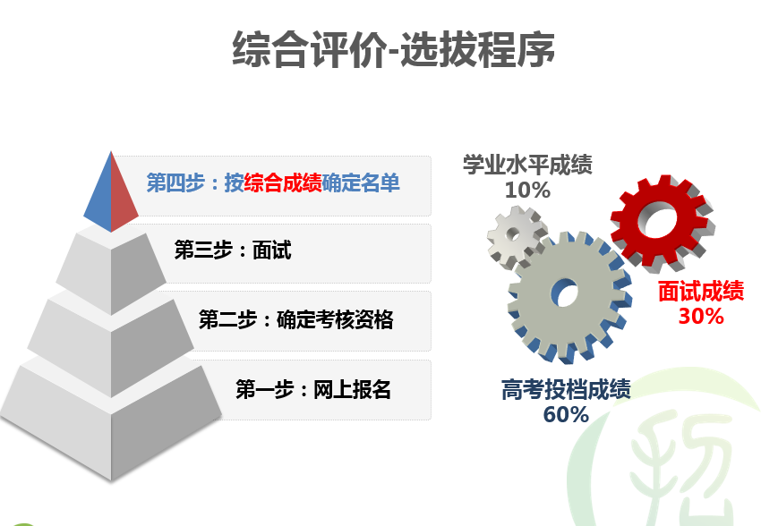 中山大學深入探索“基于統一高考和高中學業水平考試成績、參考綜合素質評價”的多元錄取機制,重點考查考生的認知能力、分析能力、應對能力,關注考生高中階段綜合素質發展軌跡,加強對考生理想信念、思想品德、社會責任感等方面的考核。最終根據考生高考投檔成績(百分制)占60%、面試成績占30%、學業水平考試成績(百分制)占10%所構成的綜合成績確定入選名單。