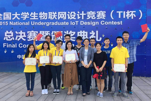 9月24日至26日,“2015全國(guó)大學(xué)生物聯(lián)網(wǎng)設(shè)計(jì)競(jìng)賽(TI杯)全國(guó)總決賽”在無(wú)錫新區(qū)太湖國(guó)際博覽中心舉辦。本屆競(jìng)賽共吸引了來(lái)自310所大學(xué)的950個(gè)團(tuán)隊(duì)踴躍報(bào)名,經(jīng)過(guò)激烈角逐,我校移動(dòng)信息工程學(xué)院學(xué)子在全國(guó)總決賽表現(xiàn)優(yōu)異,獲得佳績(jī)。移動(dòng)信息工程學(xué)院2012級(jí)本科生王超穎、劉健、梁?jiǎn)躺菚詯偨M成的代表隊(duì)?wèi){借作品“基于動(dòng)態(tài)PPG信號(hào)處理的心率表”奪得本次大賽的一等獎(jiǎng),2012級(jí)本科生曾兆陽(yáng)、吳璐璐、曾麗儀、楊劍飛組成的代表隊(duì)?wèi){借作品“基于微信平臺(tái)的家庭娛樂(lè)系統(tǒng)”榮獲大賽一等獎(jiǎng),2013級(jí)本科生陳曉旋、儲(chǔ)瑩、江鑫、吳冰龍組成的代表隊(duì)?wèi){借作品“智能頭盔”榮獲大賽二等獎(jiǎng),且我校獲得了本次大賽的優(yōu)秀組織獎(jiǎng)。