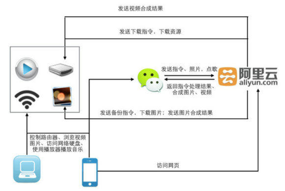 參賽作品“基于微信平臺(tái)的家庭娛樂(lè)系統(tǒng)”是一款基于openwrt系統(tǒng)的智能路由器,采用微信平臺(tái)進(jìn)行管理,并集成Airplay播放器、遠(yuǎn)程下載、照片快速同步分享等功能,將路由器作為家庭網(wǎng)絡(luò)的中心樞紐,用戶(hù)可在手機(jī)微信上簡(jiǎn)單快捷地遠(yuǎn)程控制家庭網(wǎng)絡(luò)預(yù)先下載電影等資源,與好友在同網(wǎng)絡(luò)下上傳照片分享,更可以享受在微信上快速美化圖片、制作視頻等娛樂(lè)功能,體驗(yàn)家庭娛樂(lè)系統(tǒng)一體化的完美快感。路由器外接阿里云服務(wù)器,平臺(tái)化的管理,使每臺(tái)路由器功能一致,卻又獨(dú)一無(wú)二。