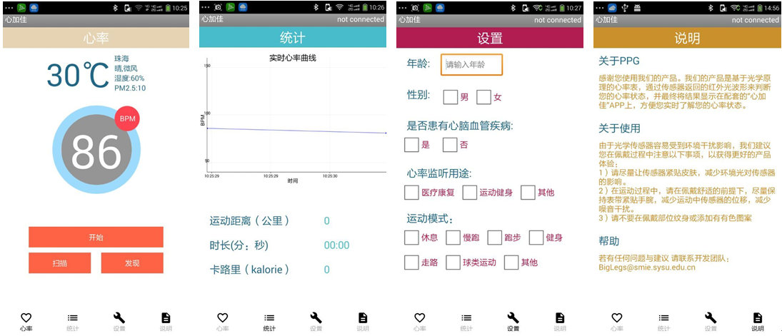 參賽作品“基于動(dòng)態(tài)PPG信號(hào)處理的心率表”運(yùn)用了光學(xué)體積描記術(shù)(PPG),使得心率可在運(yùn)動(dòng)狀態(tài)下被精確測(cè)量,并且硬件小巧,可穿戴。經(jīng)過(guò)硬件采集和算法處理后的心率值,在手機(jī)app上進(jìn)行數(shù)據(jù)分析和呈現(xiàn),同時(shí)將心率與身體狀態(tài)信息發(fā)送至云平臺(tái),有望通過(guò)大數(shù)據(jù)分析提前診斷和預(yù)測(cè)疾病,提高人們的生活質(zhì)量。